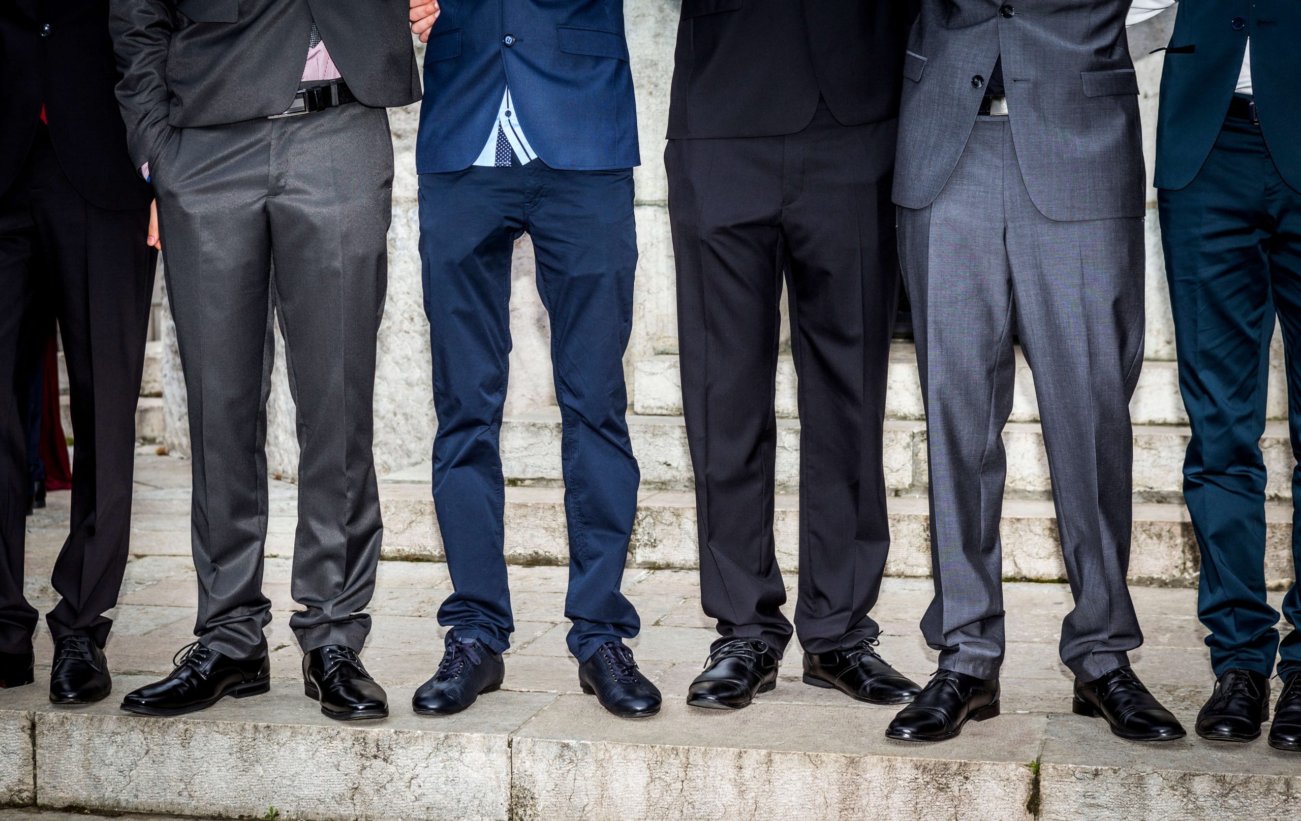 Businessmen walking and talking in empty warehouse