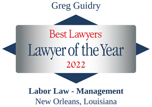 Greg has been nominated numerous times by his peers for inclusion in the Best Lawyers in America publication: Lawyer of the Year for Labor Law – Management (2014), Baton Rouge Region; Lawyer of the Year for Employment Law – Management (2019), New Orleans Region; Lawyer of the Year for Litigation – Labor, and for Employment – Management (2021), New Orleans Region; and Lawyer of the Year for Labor Law – Management (2022), New Orleans Region. Greg has also been recognized as a Louisiana Super Lawyer in the field of labor and employment law. He is licensed in Louisiana and Texas.